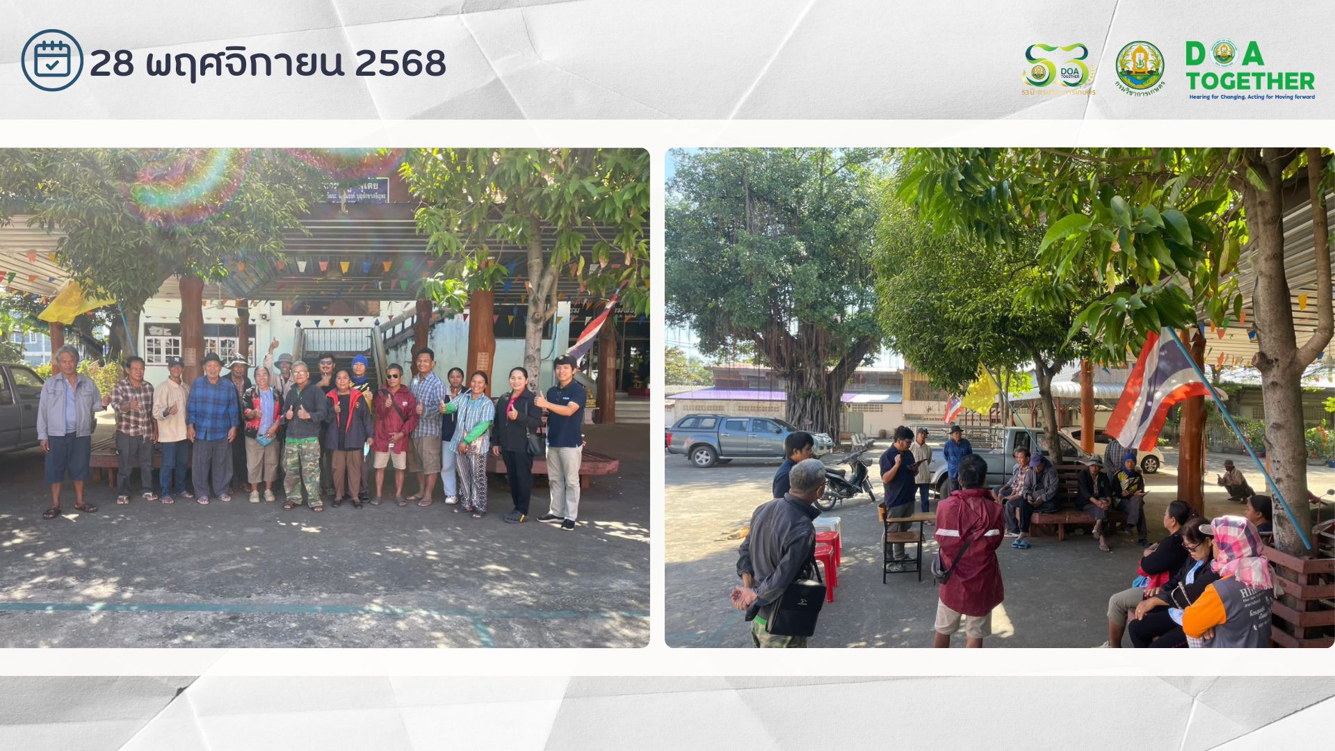 วันที่ 28 พฤศจิกายน 2568 นายชูชาติ บุญศักดิ์ ผู้อำนวยการศูนย์วิจัยและพัฒนาเมล็ดพันธุ์พืชลพบุรี มอบหมายให้ นายอินทร์ อินโต เจ้าพนักงานการเกษตรปฏิบัติงาน พร้อมด้วยเจ้าหน้าที่ของศูนย์สำรวจพื้นที่และคัดเลือกเกษตรกรเข้าร่วม โครงการพัฒนาศักยภาพกระบวนการผลิตสินค้าเกษตร กิจกรรม : การพัฒนาศักยภาพกระบวนการผลิตสินค้าเกษตร เพื่อผลิตเมล็ดพันธุ์ถั่วเขียว พร้อมให้คำแนะนำการใช้สารเคมีป้องกันกำจัดแมลงให้กับเกษตรกร ณ วัดพุเตยประสิทธิ์ ตำบลพุเตย อำเภอวิเชียรบุรี จังหวัดเพชรบูรณ์