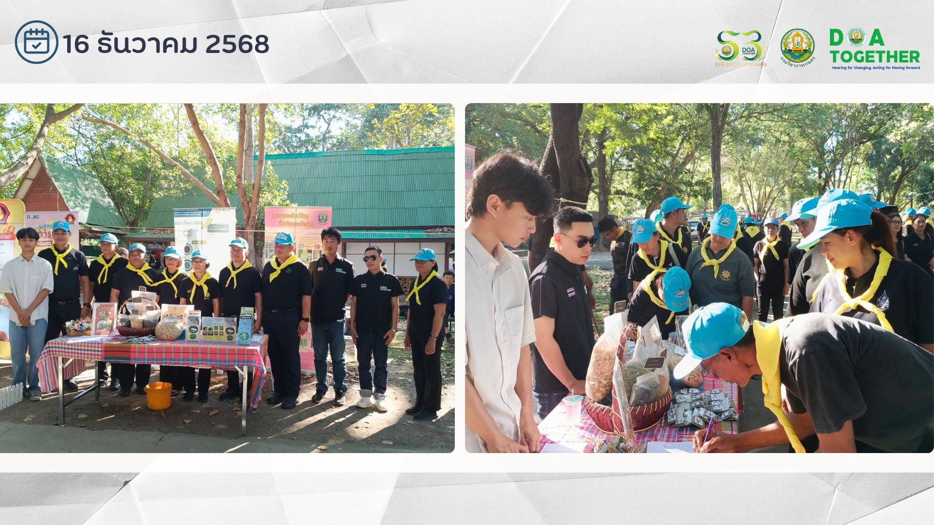 วันที่ 16 ธันวาคม 2568 นายชูชาติ บุญศักดิ์ ผู้อำนวยการศูนย์วิจัยและพัฒนาเมล็ดพันธุ์พืชลพบุรี มอบหมายให้ นายเอกรัฐ นาคอ้าย นักวิชาการเกษตร และเจ้าหน้าที่ศูนย์ฯ ร่วมจัดนิทรรศการงานวันดินโลก World Soil Day” ประจำปี 2568 ภายใต้หัวข้อ Healthy soils for healthy cities : ดินที่สมบูรณ์ สู่เมืองที่สมดุล เกื้อกูลชีวิต โดยให้ความรู้เกี่ยวกับการผลิตเมล็ดพันธุ์พืชไร่หลังนา การเพาะถั่วงอกคอนโดปลอดสารพิษ และแจกปัจจัยการผลิตทางการเกษตร เมล็ดพันธ์ุกระเจี๊ยบเขียวพันธุ์ กวก.กาญจนบุรี 1 แก่ผู้ร่วมลงทะเบียน โดยมีนายวีรพงศ์ ฤทธิ์รอด ผู้ว่าราชการจังหวัดสระบุรี เป็นประธานเปิดงาน ณ สวนสัตว์ลพบุรี ตำบลทะเลชุบศร อำเภอเมืองลพบุรี จังหวัดลพบุรี