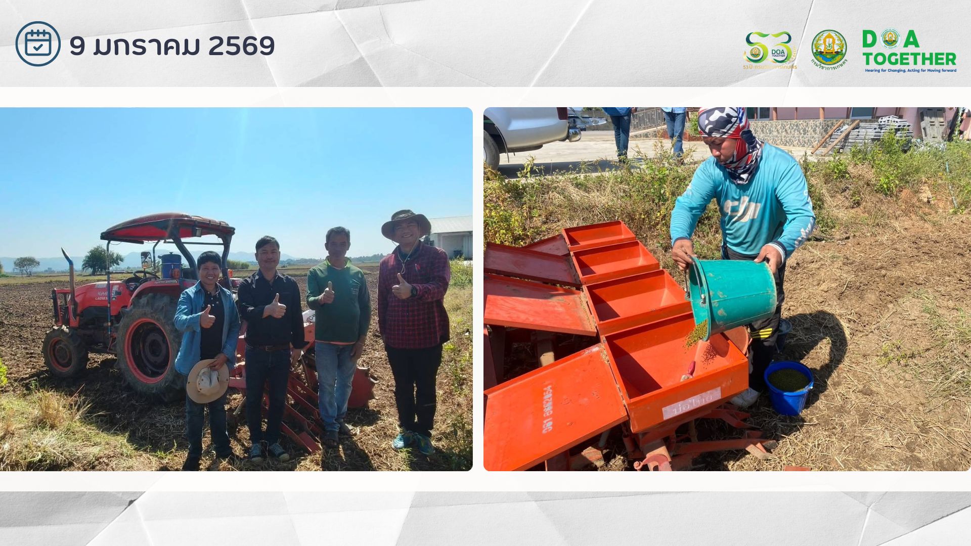 วันที่ 9 มกราคม 2569 นายชูชาติ บุญศักดิ์ ผู้อำนวยการศูนย์วิจัยและพัฒนาเมล็ดพันธุ์พืชลพบุรี มอบหมายให้ นายศรัณย์ พรมเกษ เจ้าพนักงานการเกษตรปฏิบัติงาน และเจ้าหน้าที่ศูนย์ฯ ลงพื้นที่ติดต่อประสานงานและดำเนินการจัดทำแปลงต้นแบบ การปลูกถั่วเขียว พันธุ์ กวก.ชัยนาท 3 พร้อมการใช้ปุ๋ยชีวภาพไรโซเบียม ซึ่งเป็นเทคโนโลยีของกรมฯ ในโครงการผลิตเมล็ดพันธุ์พืชตระกูลถั่วเพื่อเพิ่มศักยภาพการผลิตและยกระดับเศรษฐกิจชุมชนอย่างยั่งยืน กิจกรรมผลิตเมล็ดพันธุ์ถั่วเขียวเพื่อเพิ่มศักยภาพการผลิตและยกระดับเศรษฐกิจชุมชน ณ สหกรณ์การเกษตรหนองไผ่ จำกัด ตำบลท่าแดง อำเภอหนองไผ่ จังหวัดเพชรบูรณ์