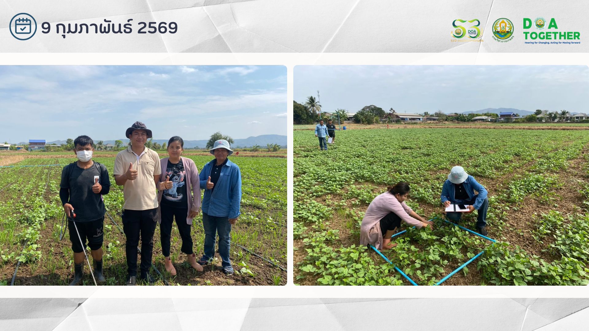 วันที่ 9 กุมภาพันธ์ 2569 นายชูชาติ บุญศักดิ์ ผู้อำนวยการศูนย์วิจัยและพัฒนาเมล็ดพันธุ์พืชลพบุรี มอบหมายให้ นายศรัณย์ พรมเกษ เจ้าพนักงานการเกษตรปฏิบัติงาน และเจ้าหน้าที่ศูนย์ฯ ตรวจติดตามแปลงต้นแบบการผลิตเมล็ดพันธุ์ถั่วเขียว พันธุ์ กวก.ชัยนาท3 ฤดูแล้ง และได้ดำเนินการฉีดพ่นสารบราสสิโนสเตียรอยด์ ซึ่งเป็นสารช่วยลดการสูญเสียผลผลิตและเพิ่มคุณภาพถั่วเขียวในช่วงสภาวะแห้งแล้งหรือฝนทิ้งช่วงได้ ณ แปลงต้นแบบ สหกรณ์การเกษตรหนองไผ่ จำกัด ตำบลท่าแดง อำเภอหนองไผ่ จังหวัดเพชรบูรณ์