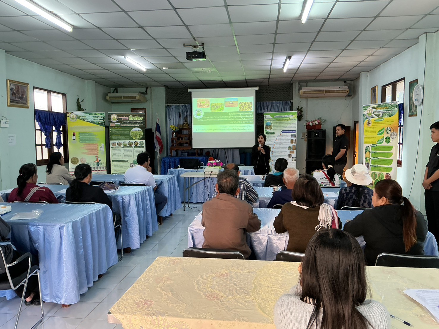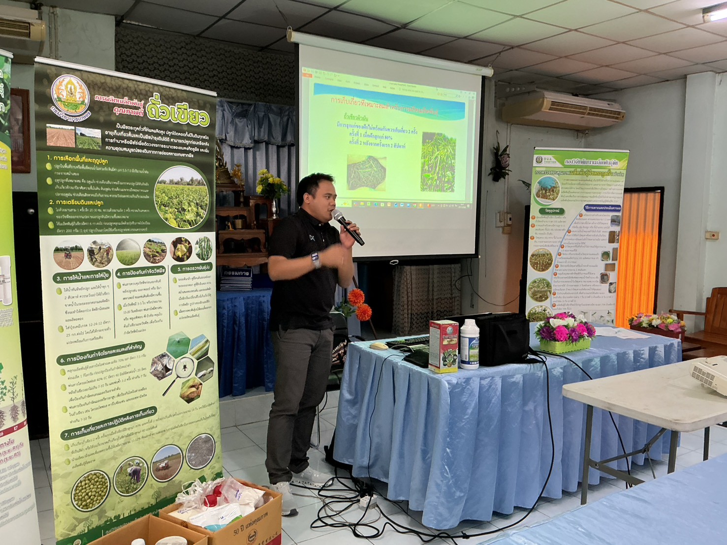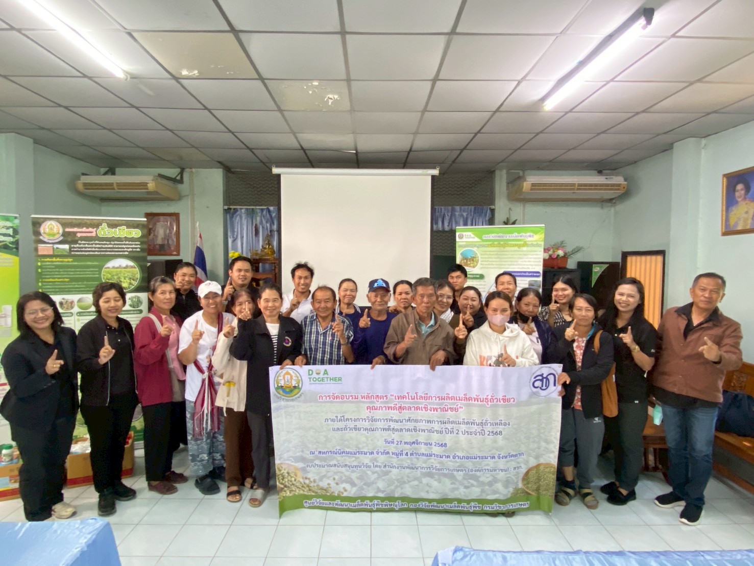 ศูนย์วิจัยและพัฒนาเมล็ดพันธุ์พืชพิษณุโลก โดย นางสาวภภัสสร วัฒนกุลภาคิน ผู้อำนวยการศูนย์วิจัยและพัฒนาเมล็ดพันธุ์พืชพิษณุโลก นางสาวศุภลักษ์ สัตยสมิทสถิต นักวิชาการเกษตรชำนาญการพิเศษ และนายธนัชชาติ ทรัพย์จี่ นักวิชาการเกษตรปฏิบัติการ พร้อมเจ้าหน้าที่ บรรยายเรื่อง การทดสอบความงอกและการประเมินความงอกพืชตระกูลถั่วอย่างง่าย การใช้ปุ๋ยชีวภาพไรโซเบียมร่วมกับการใส่ปุ๋ยตามค่าวิเคราะห์ดิน การใช้สารบราสสิโนสเตียรอยด์ในการเพิ่มผลผลิตเมล็ดพันธุ์พืชตระกูลถั่วภายใต้สภาวะแห้งแล้ง การใช้สารป้องกันกำจัดศัตรูพืชอย่างเหมาะสม และเทคโนโลยีการเก็บเกี่ยว การปรับปรุงสภาพและการเก็บรักษาเมล็ดพันธุ์อย่างง่าย แก่เกษตรกรผู้ผลิตเมล็ดพันธุ์ถั่วเขียว จำนวน 20 ราย ณ สหกรณ์นิคมแม่ระมาด จำกัด หมู่ที่ 4 ตำบลแม่ระมาด อำเภอแม่ระมาด จังหวัดตาก เพื่อเสริมสร้างความรู้ ทักษะอาชีพในการผลิตเมล็ดพันธุ์พืช พัฒนาแนวความคิดการใช้เทคโนโลยีการผลิตเพื่อลดต้นทุน สามารถเพิ่มผลผลิตเมล็ดพันธุ์ถั่วเขียวได้มีคุณภาพตรงตามมาตรฐานชั้นพันธุ์จำหน่าย และผลิตเมล็ดพันธุ์ดีไว้ใช้เอง โดยผ่านการรวมกลุ่มและบริหารจัดการร่วมกันของเกษตรกรนำไปสู่ความยั่งยืนในระดับชุมชนต่อไป