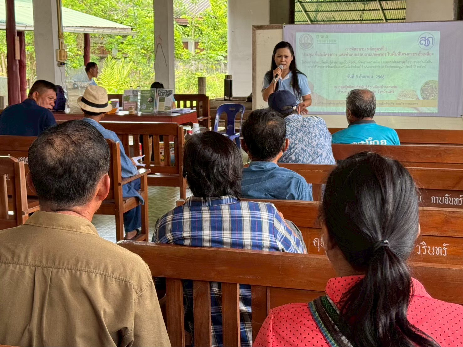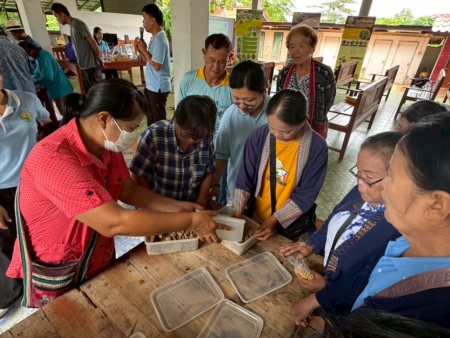 ศูนย์วิจัยและพัฒนาเมล็ดพันธุ์พืชพิษณุโลก โดย นางสาวภภัสสร วัฒนกุลภาคิน ผู้อำนวยการศูนย์วิจัยและพัฒนาเมล็ดพันธุ์พืชพิษณุโลก มอบหมายให้ นางสาวศุภลักษ์ สัตยสมิทสถิต นักวิชาการเกษตรชำนาญการพิเศษ นายธนัชชาติ ทรัพย์จี่ นักวิชาการเกษตรปฏิบัติการ พร้อมเจ้าหน้าที่ อบรมบรรยายเรื่อง การทดสอบความงอกและการประเมินความงอกพืชตระกูลถั่วอย่างง่าย การใช้ปุ๋ยชีวภาพไรโซเบียมร่วมกับการใส่ปุ๋ยตามค่าวิเคราะห์ดิน การใช้สารบราสสิโนสเตียรอยด์ในการเพิ่มผลผลิตเมล็ดพันธุ์พืชตระกูลถั่วภายใต้สภาวะแห้งแล้ง การใช้ชีวภัณฑ์จุลินทรีย์ปฏิปักษ์บาซิลลัส ซับทิลิส สายพันธุ์ PSL49 (Bacillus subtilis PSL 49) ของกรมวิชาการเกษตร ในการควบคุมโรคเมล็ดสีม่วงและโรคเมล็ดเน่าโฟมอปซิส และเทคโนโลยีการเก็บเกี่ยว การปรับปรุงสภาพและการเก็บรักษาเมล็ดพันธุ์อย่างง่าย ให้แก่เกษตรกรผู้ผลิตเมล็ดพันธุ์ถั่วเหลือง จำนวน 38 ราย ณ ศูนวัดบ้านน้ำโค้ง ตำบลเด่นชัย อำเภอเด่นชัย จังหวัดแพร่ เพื่อเสริมสร้างความรู้ ทักษะอาชีพในการผลิตเมล็ดพันธุ์พืชและพัฒนาแนวคิดการใช้เทคโนโลยีการผลิตเพื่อลดต้นทุน เพิ่มรายได้ และสามารถเพิ่มผลผลิตเมล็ดพันธุ์ถั่วเหลือง ได้มีคุณภาพตรงตามมาตรฐานชั้นพันธุ์จำหน่ายให้แก่กลุ่มเกษตรกร