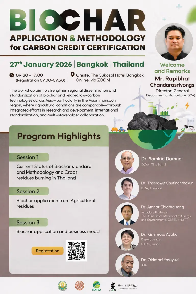 ประชาสัมพันธ์ BIOCHAR APPLICATION & METHODOLOGY for CARBON CREDIT CERTIFICATION22 มกราคม 256922 มกราคม 2026