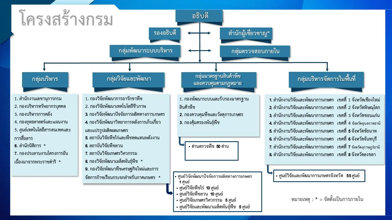 ดูรายละเอียดกฎกระทรวงแบ่งส่วนราชการกรมวิชาการเกษตร กระทรวงเกษตรและสหกรณ์ พ.ศ. ๒๕๕๗