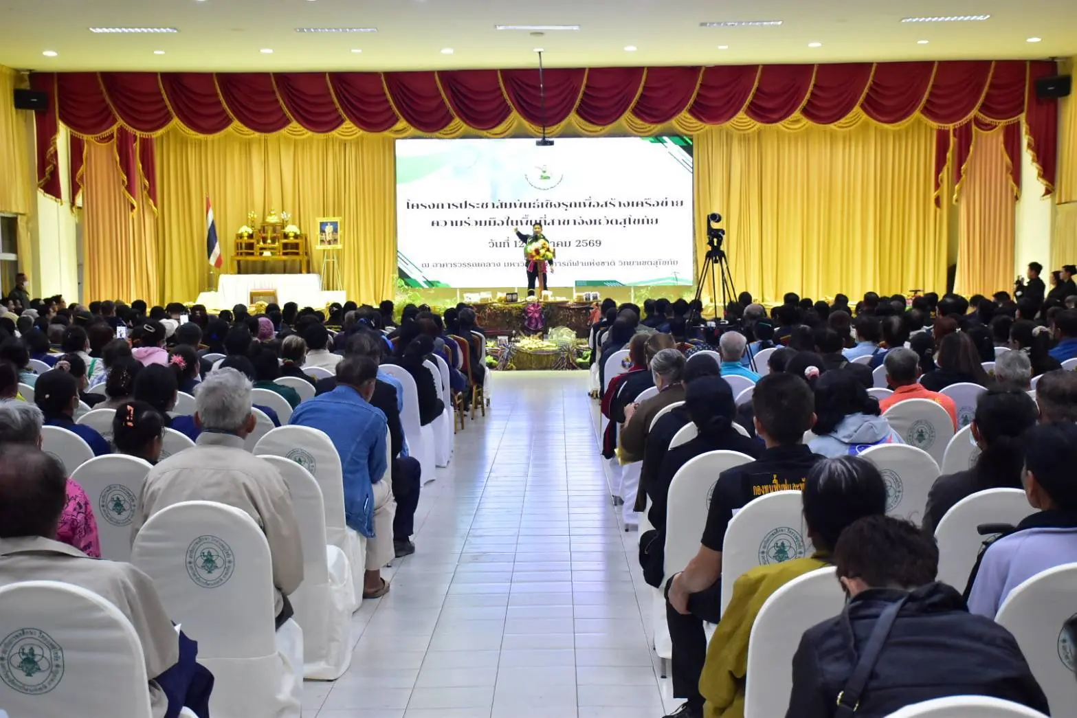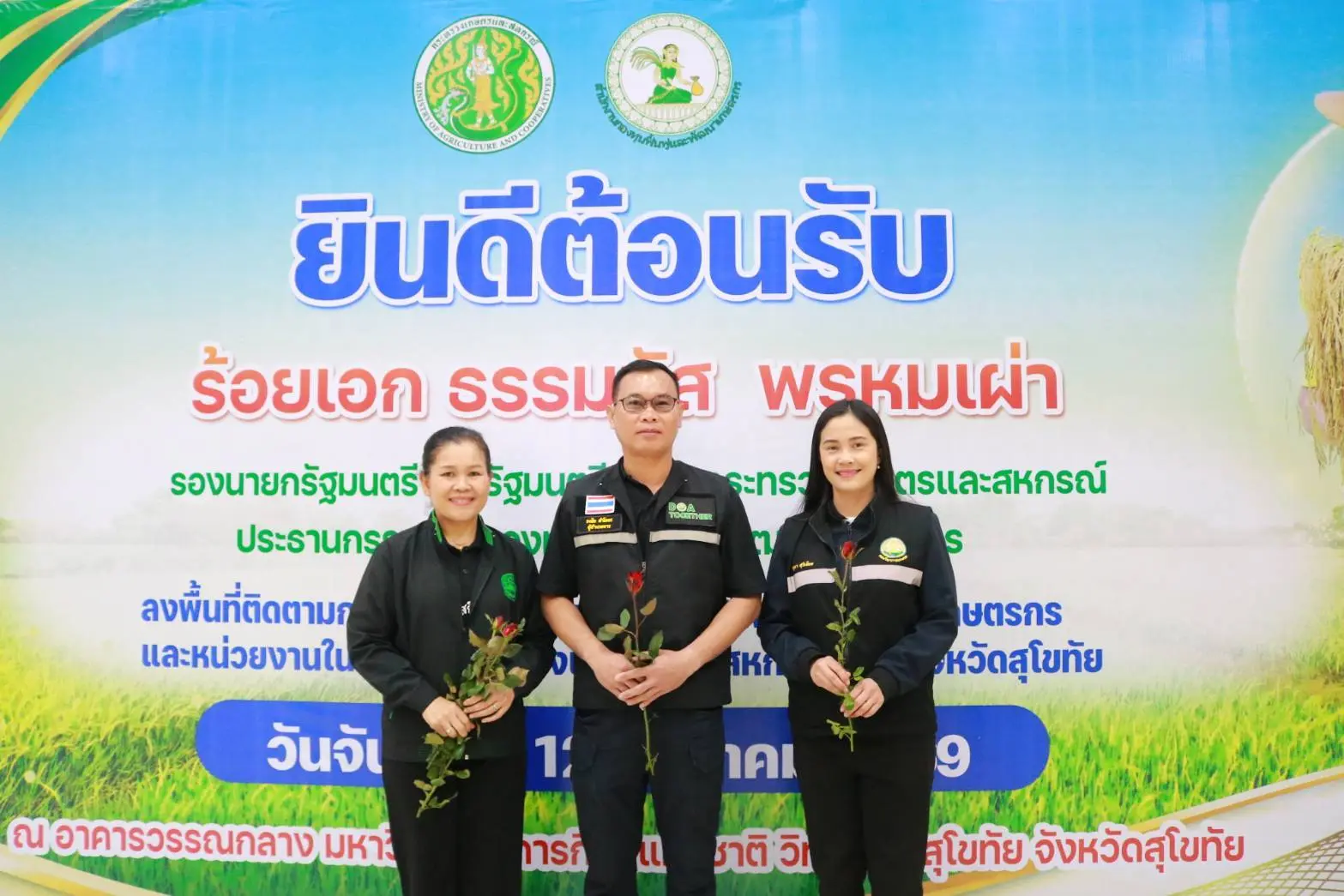 เมื่อวันที่ 12 มกราคม 2569 นายรพีภัทร์ จันทรศรีวงศ์ อธิบดีกรมวิชาการเกษตร มอบหมายให้ นายธงชัย คำโคตร ผู้อำนวยการสำนักวิจัยและพัฒนาการเกษตรเขตที่ 2 พร้อมด้วยนางสาวยุพา สุวิเชียร ผู้อำนวยการศูนย์วิจัยและพัฒนาการเกษตรสุโขทัย และนางอารีรัตน์ พระเพชร ผู้อำนวยการศูนย์วิจัยพืชสวนสุโขทัย ร่วมให้การต้อนรับ ร้อยเอกธรรมนัส พรหมเผ่า รองนายกรัฐมนตรี และรัฐมนตรีว่าการกระทรวงเกษตรและสหกรณ์ และประธานกรรมการกองทุนฟื้นฟูและพัฒนาเกษตรกร เป็นประธานเปิดโครงการประชาสัมพันธ์เชิงรุกเพื่อสร้างเครือข่ายความร่วมมือในพื้นที่สาขาจังหวัด จังหวัดสุโขทัย ซึ่งจัดขึ้นเพื่อสร้างความเข้าใจที่ถูกต้องในแนวทางการดำเนินงานของกองทุนฟื้นฟูและพัฒนาเกษตรกร ด้านต่าง ๆ รวมทั้งให้ความร่วมมือในการแก้ไขปัญหา ณ อาคารวรรณกลาง มหาวิทยาลัยการกีฬาแห่งชาติ วิทยาเขตสุโขทัย จังหวัดสุโขทัย โดยมี ศ.ดร.นฤมล ภิญโญสินวัฒน์ รัฐมนตรีว่าการกระทรวงศึกษาธิการ นายนพฤทธิ์ ศิริโกศล ผู้ว่าราชการจังหวัดสุโขทัย นางวรรณี มหานีรานนท์ เลขาธิการสำนักงานกองทุนฟื้นฟูและพัฒนาเกษตรกร พร้อมด้วยหัวหน้าส่วนราชการ ในสังกัดกระทรวงเกษตรและสหกรณ์ และประชาชน กว่า 1,000 คน ร่วมให้การต้อนรับ