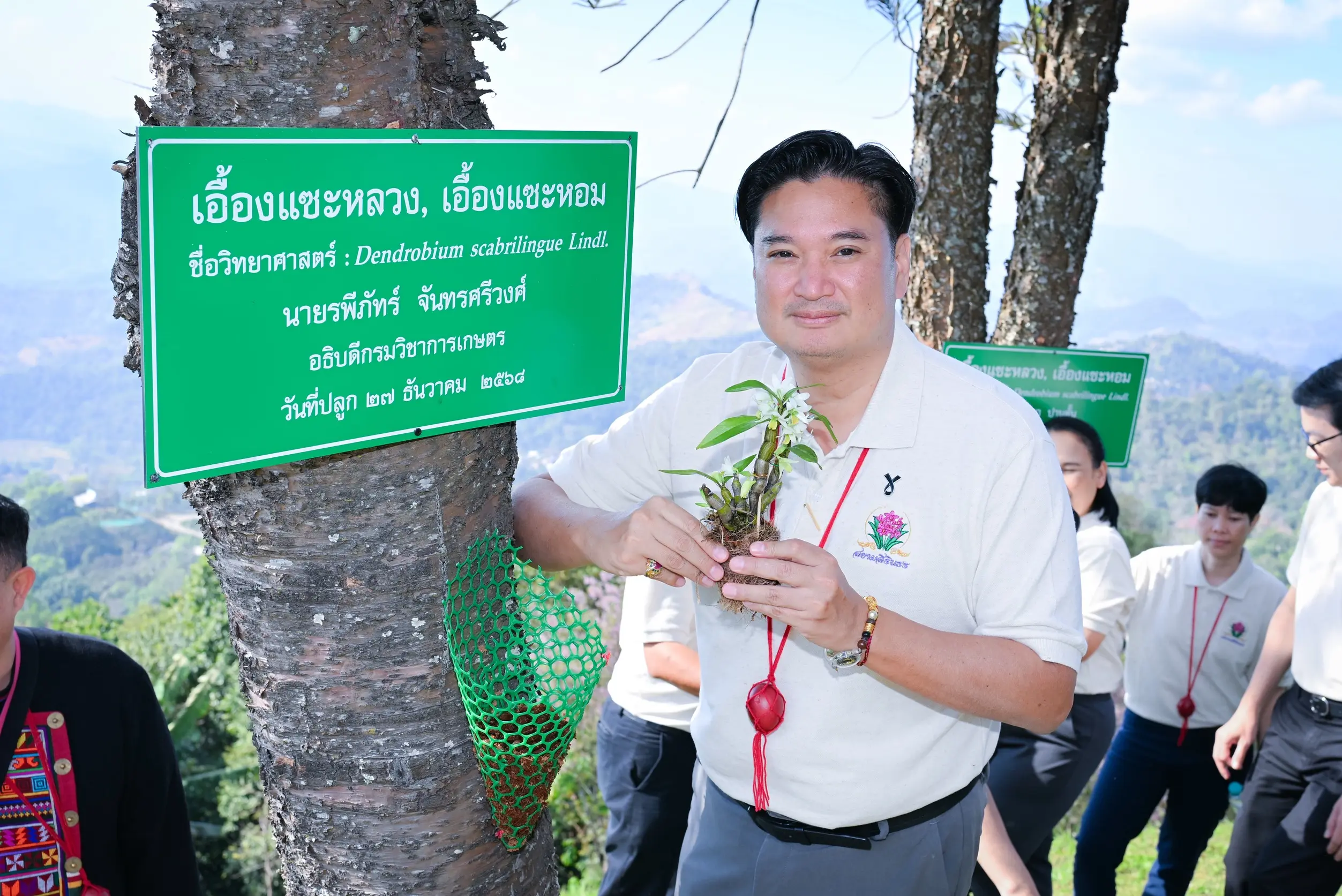 ในโอกาสนี้ อธิบดีกรมวิชาการเกษตรพร้อมคณะ ได้ร่วมปลูกกล้วยไม้ “เอื้องแซะ” (Dendrobium scabrilingue) ณ จุดชมวิวของศูนย์ฯ เพื่อสนองพระราชเสาวนีย์ สมเด็จพระนางเจ้าสิริกิติ์ พระบรมราชินีนาถ พระบรมราชชนนีพันปีหลวง ในการอนุรักษ์และขยายพันธุ์กล้วยไม้ป่าหายาก ให้คงอยู่ในระบบนิเวศของประเทศไทย ตลอดจนส่งเสริมการสร้างจิตสำนึกแก่ประชาชนให้มีส่วนร่วมในการอนุรักษ์ทรัพยากรธรรมชาติและสิ่งแวดล้อมอย่างยั่งยืนสำนึกแก่ประชาชนให้มีส่วนร่วมในการอนุรักษ์ทรัพยากรธรรมชาติและสิ่งแวดล้อมอย่างยั่งยืน