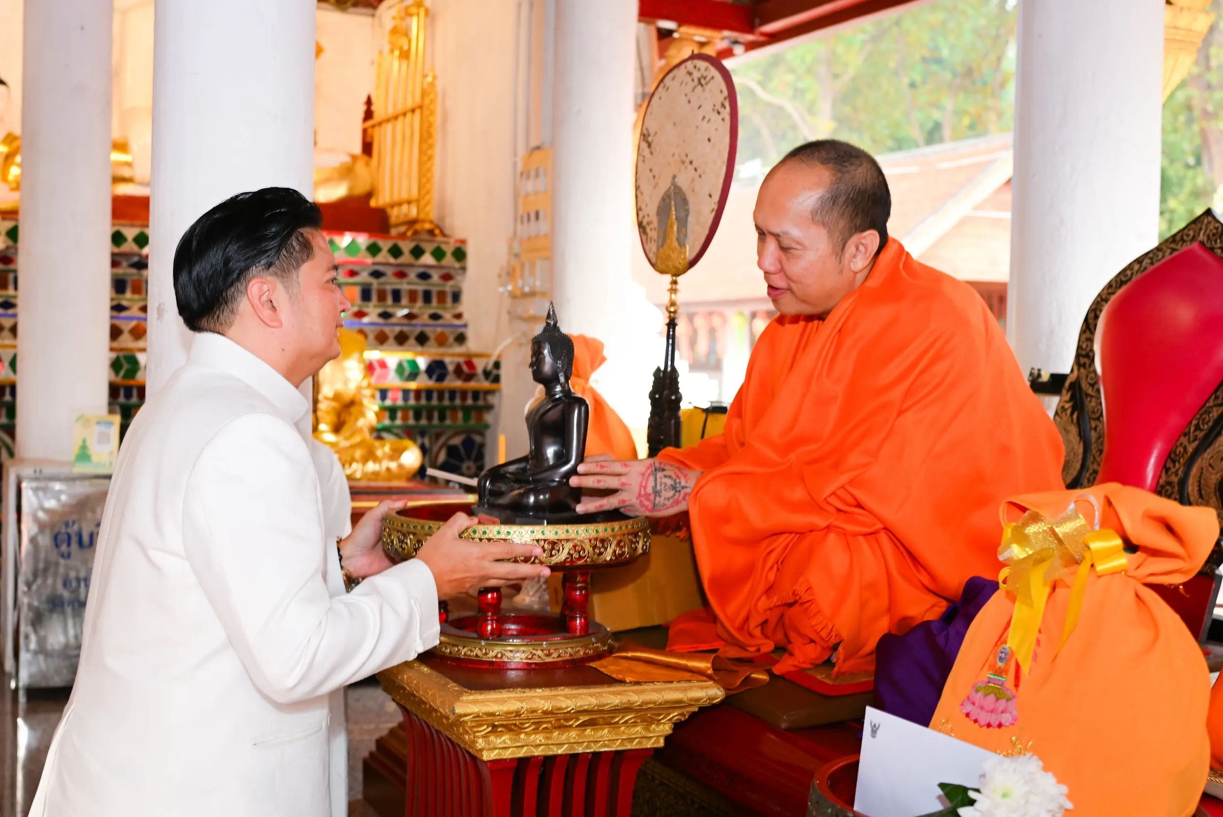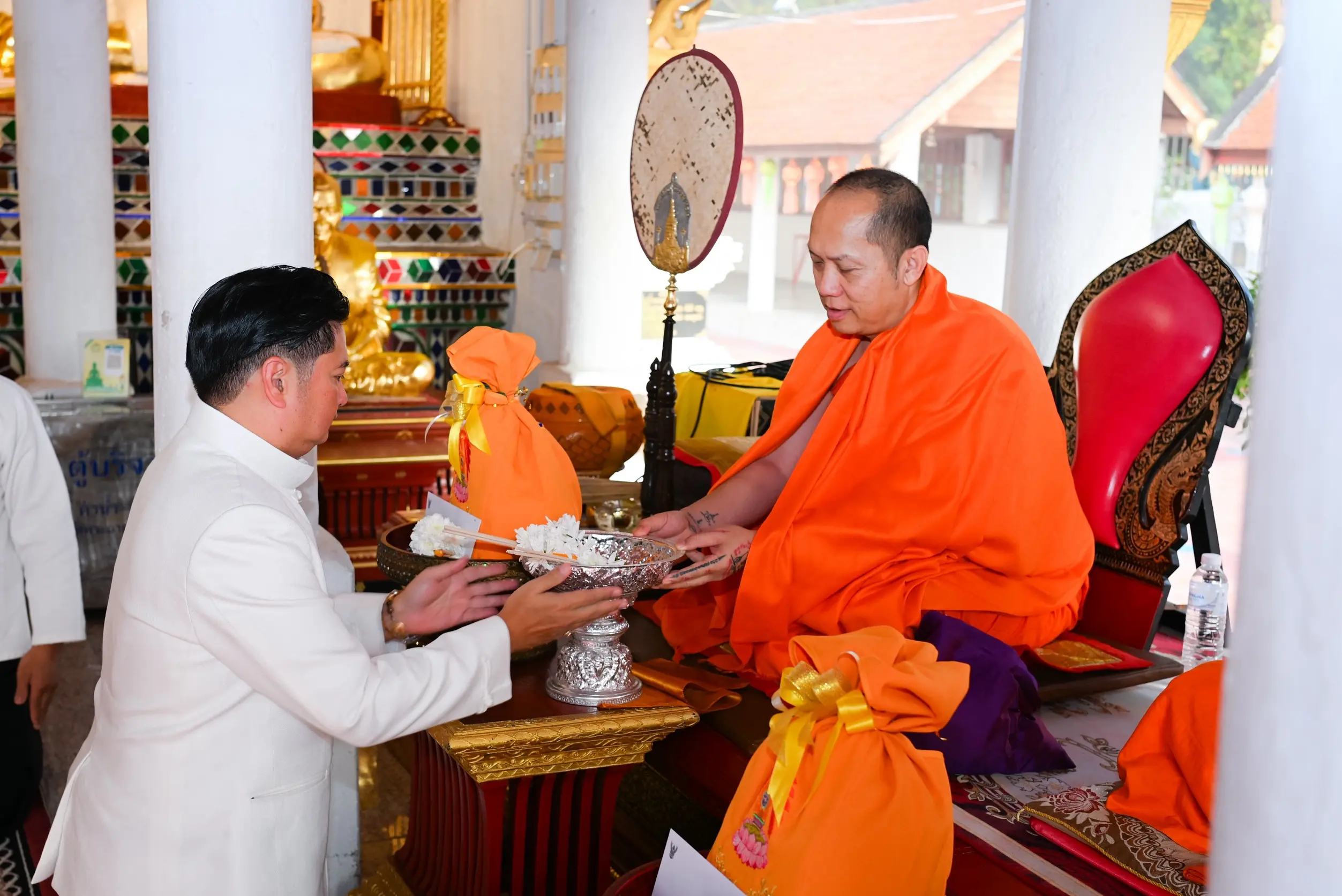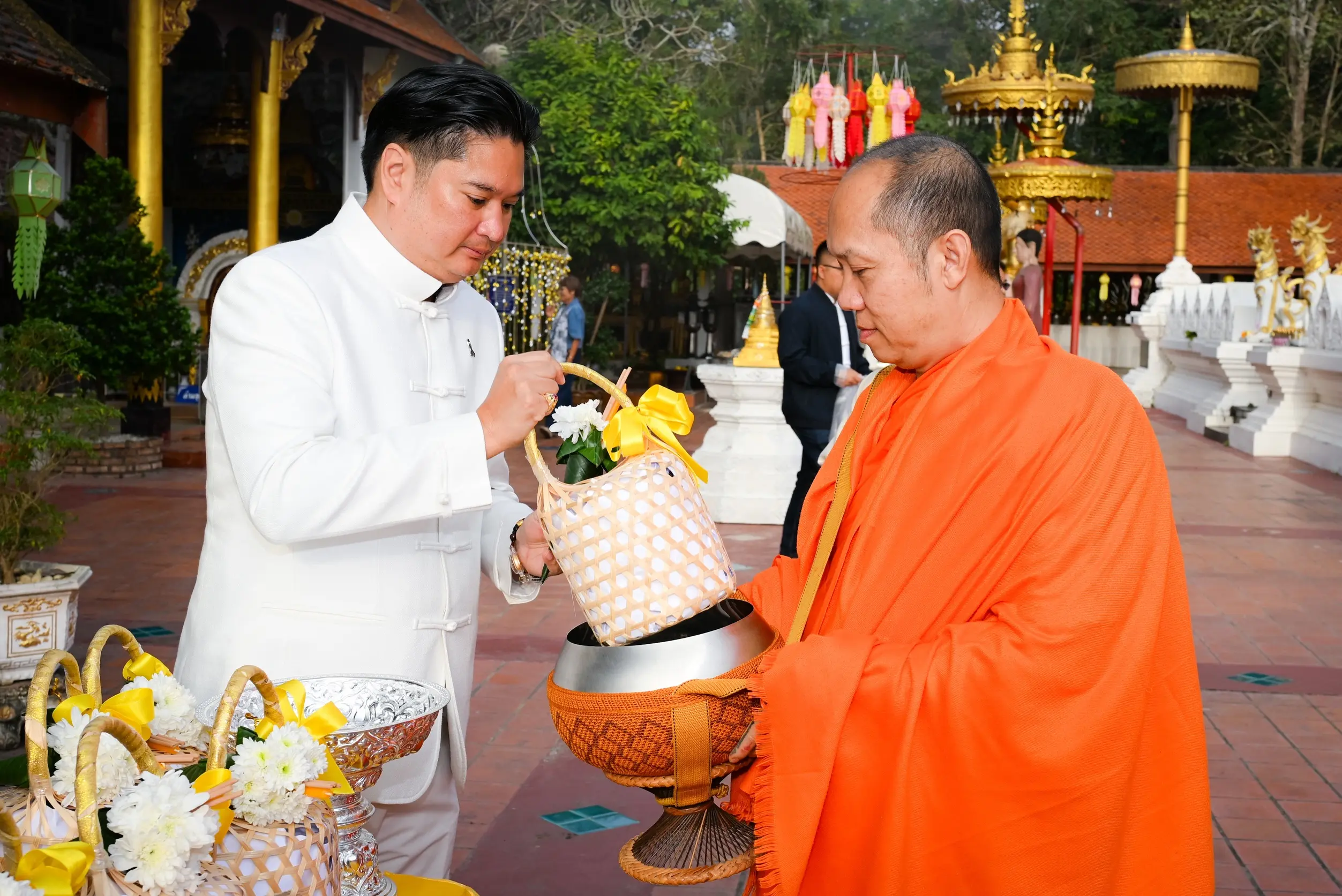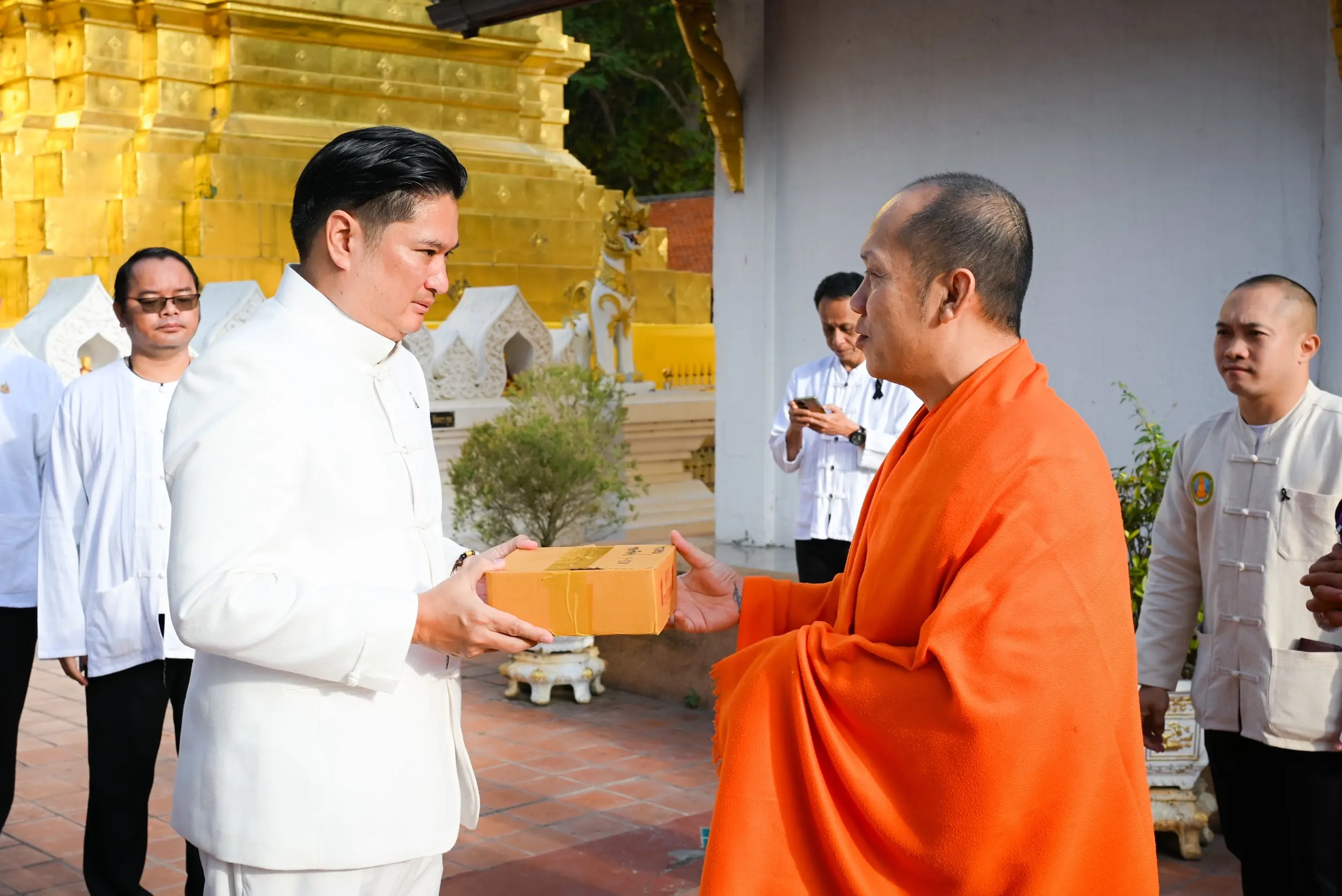 ทั้งนี้ ได้ร่วมทำบุญตักบาตรข้าวสารและอาหารแห้ง แด่พระภิกษุสงฆ์ จำนวน 9 รูป เพื่อความเป็นสิริมงคลในการเริ่มต้นปีใหม่ ณ วัดพระธาตุจอมทอง อำเภอเมือง จังหวัดพะเยา