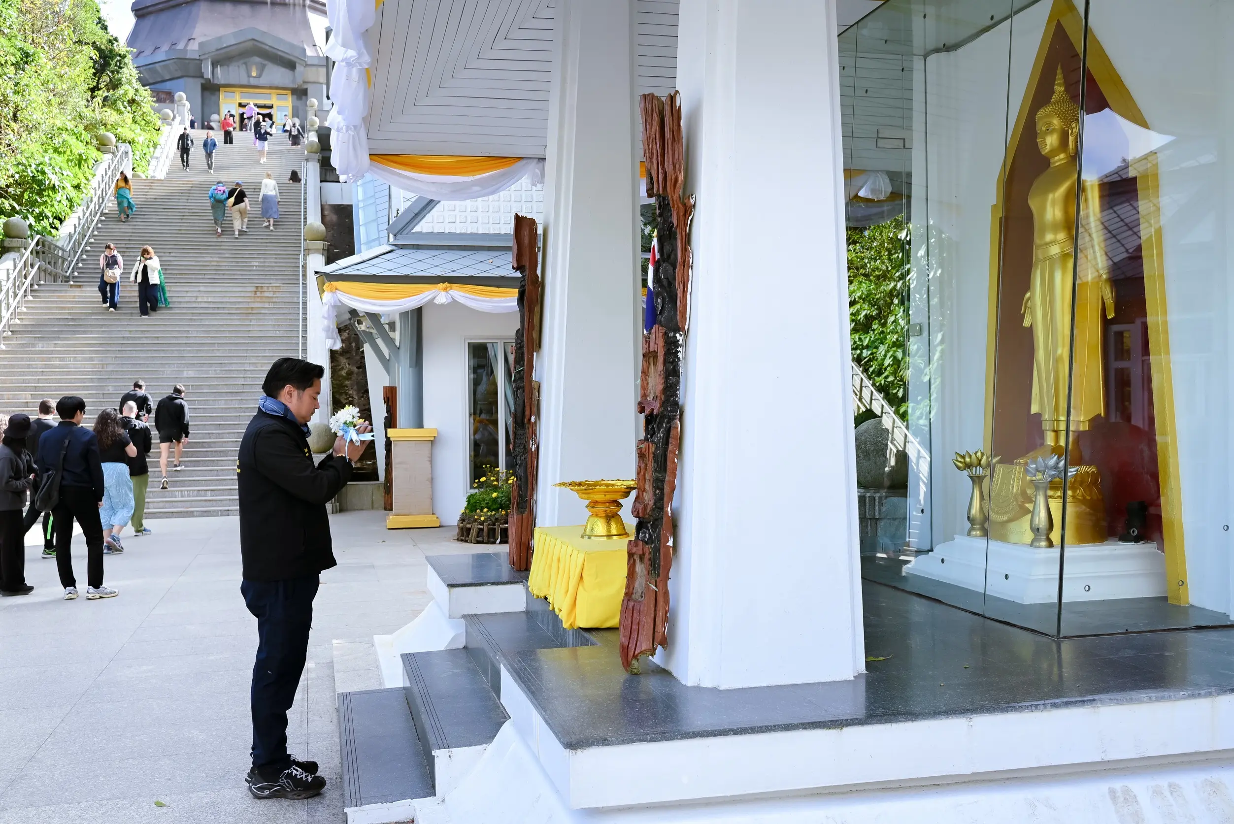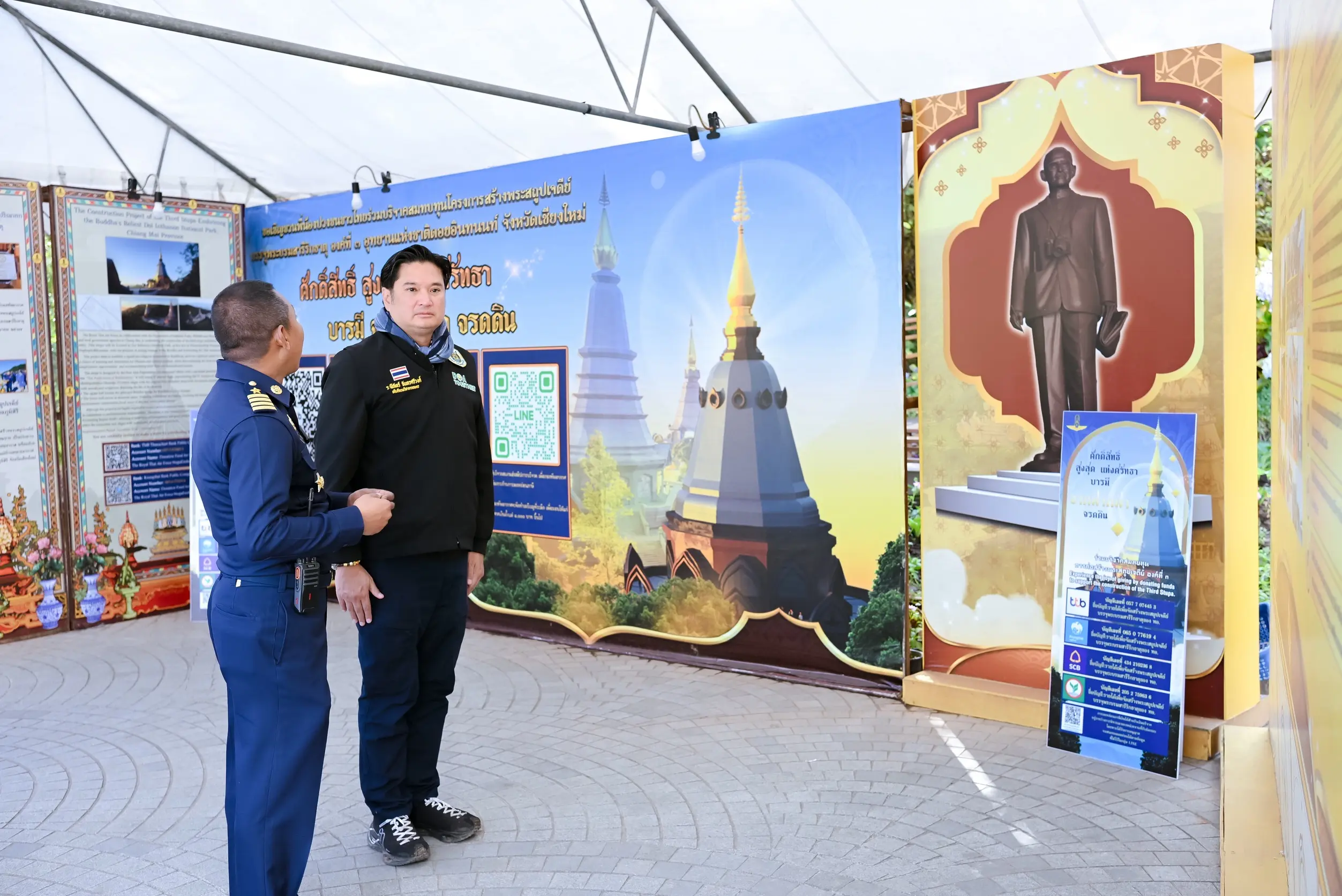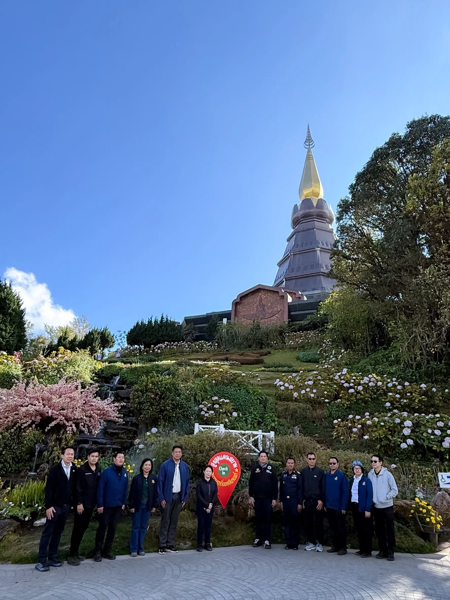 จากนั้น คณะได้เดินทางไปยังพระธาตุดอยอินทนนท์ เพื่อสักการะพระมหาธาตุ นภเมทนีดล และพระมหาธาตุ นภพลภูมิสิริ เจดีย์คู่บารมีบนยอดดอยอินทนนท์ ซึ่งเป็นจุดสูงสุดของประเทศไทย พร้อมทั้งร่วมมอบเงินบริจาค ณ พระธาตุดอยอินทนนท์ จังหวัดเชียงใหม่