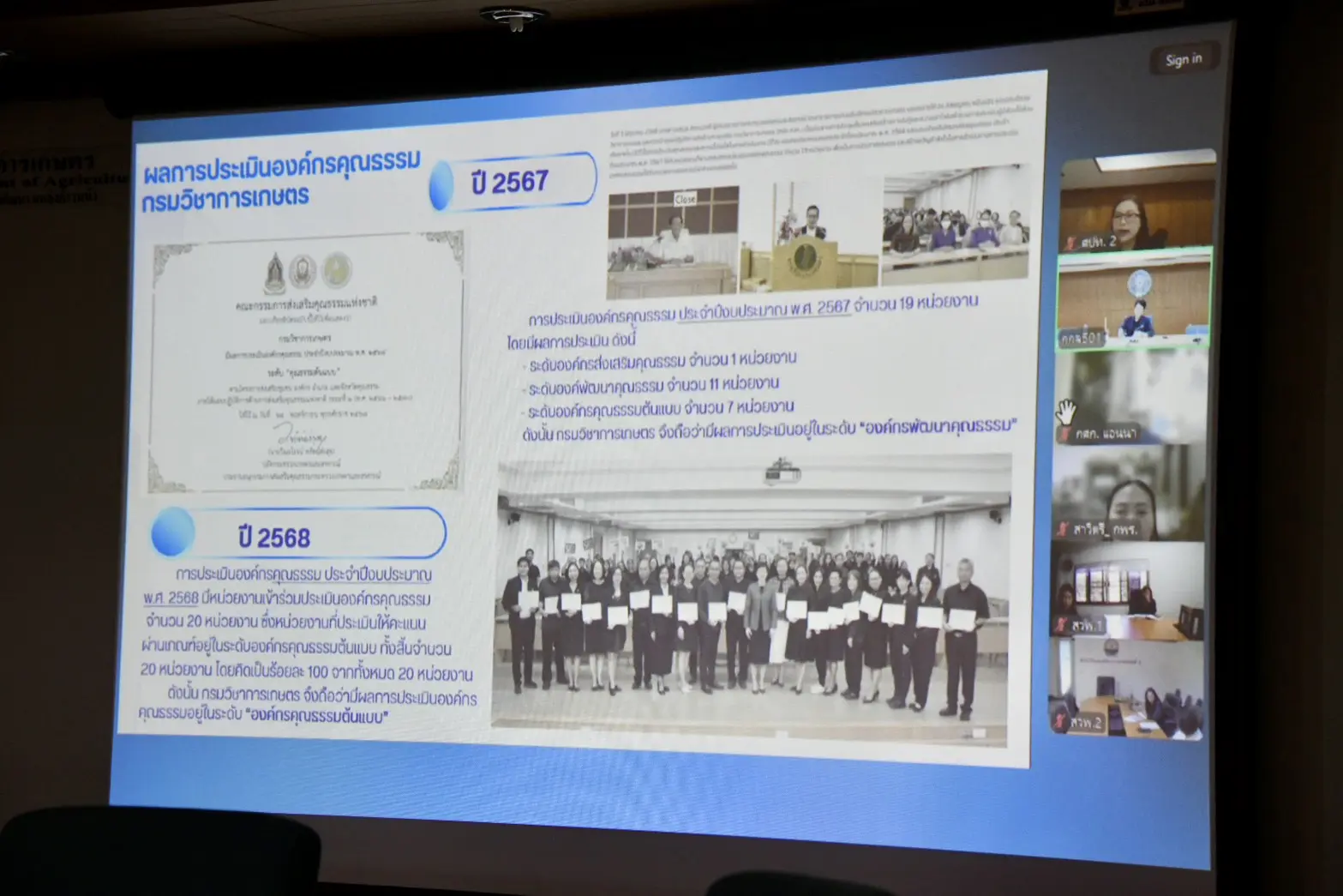 ประเมินองค์กรคุณธรรมของกรมวิชาการเกษตร ประจำปีงบประมาณ พ.ศ. 2569 มีหน่วยงานเข้าร่วมประเมินองค์กรคุณธรรม จำนวน 30 หน่วยงาน ณ ห้องประชุม 501 ชั้น 5 ตึกกสิกรรม และผ่านระบบออนไลน์ด้วยโปรมแกรมซูม