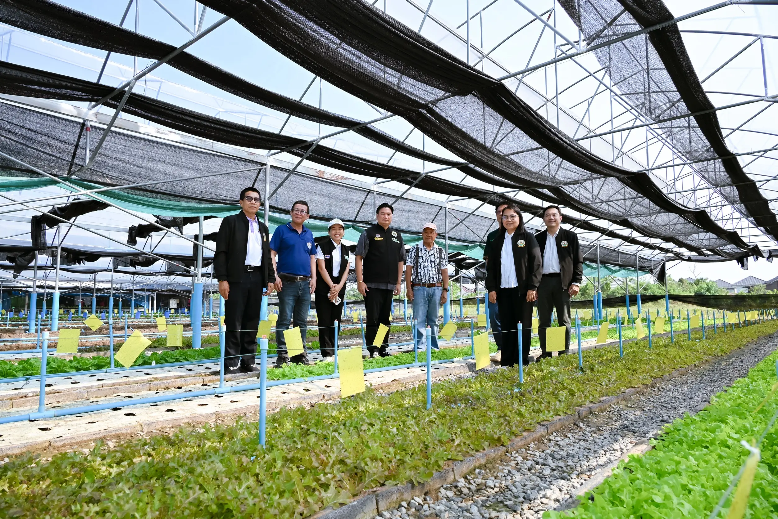 ในการนี้ นางสาวพรทิพย์ แพงจันทร์ ผู้อำนวยการศูนย์วิจัยและพัฒนาการเกษตรกาฬสินธุ์ กล่าวรายงานและนำคณะผู้บริหารลงพื้นที่ตรวจเยี่ยมฟาร์มเกื้อบุญผักปลอดสาร ซึ่งเป็นแปลงขยายผล จากโครงการ 76 โมเดล โดยนำเทคโนโลยีของกรมวิชาการเกษตร มาปรับใช้ในการผลิตพืชผักอินทรีย์ในสภาพโรงเรือน อาทิเช่น การใช้แหนแดงแห้งผสมกับดินปลูก การใช้ชีวภัณฑ์ต่างๆ ควบคุมศัตรูพืช ซึ่งทำให้ได้ผลิตผลที่มีคุณภาพ ได้ราคาสูง สามารถลดต้นทุนการผลิตได้มากกว่าร้อยละ 60 ขณะนี้ได้รับการรับรองมาตรฐานเกษตรอินทรีย์ในระยะปรับเปลี่ยน และใช้เป็นแหล่งเรียนรู้ให้เกษตรกรเครือข่ายด้านเกษตรอินทรีย์ในจังหวัดกาฬสินธุ์และจังหวัดใกล้เคียง