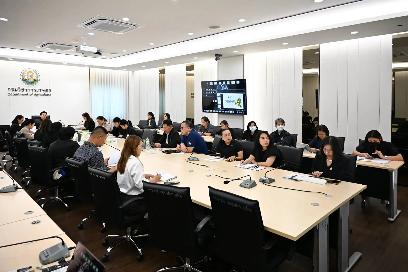 ที่ประชุมได้รับทราบความก้าวหน้าโครงการวิจัยที่สำคัญเช่น โครงการค้นหายีนที่เกี่ยวข้องกับลักษณะสำคัญในพืชเศรษฐกิจ โครงการพัฒนาปรับปรุงพันธุ์พืชใหม่ด้วยเทคโนโลยีการปรับแต่งจีโนม Genome Editing (GEd) หรือการปรับแต่งจีโนม ถือเป็นก้าวกระโดดจากการปรับปรุงพันธุ์แบบดั้งเดิม เพราะมีความแม่นยำสูงและใช้ระยะเวลาน้อยลง ช่วยตอบโจทย์นโยบายโดยเฉพาะการยกระดับภาคเกษตรกรรมไทยให้รองรับการเปลี่ยนแปลงสภาพภูมิอากาศและวิกฤตความมั่นคงทางอาหาร พืชสำคัญที่กำลังดำเนินการ เช่น ถั่วเหลือง ข้าวโพดเลี้ยงสัตว์ มันสำปะหลัง เป็นต้น นอกจากนี้ยังติดตามผลการดำเนินงานโครงการผลิตพืชสมุนไพรเพื่อปรับปรุงคุณภาพและมาตรฐาน GACP ตามแผนแม่บทแห่งชาติ ว่าด้วยการพัฒนาสมุนไพรไทย (ฉบับที่ 2) พ.ศ. 2566 – 2570 เพื่อยกระดับสมุนไพรไทยให้เป็น Herb Champion ตอบนโยบาย “เกษตรมูลค่าสูง” โครงการลดการเผาอย่างยั่งยืนตามมาตรฐานการผลิตพืชในพื้นที่ภาคเหนือ โดยการสนับสนุนต้นพันธุ์พืชเพื่อปรับเปลี่ยนให้เกษตรกรปลูกพืชที่มีมูลค่าสูง ได้แก่ กาแฟอะราบิกา กาแฟโรบัสต้า และไม้ผลเศรษฐกิจที่เหมาะสมในพื้นที่ รวมจำนวน 263,000 ต้น การเพิ่มมูลค่าเศษวัสดุเหลือใช้ด้วยไบโอชาร์ในพื้นที่ปลูกข้าวโพดเลี้ยงสัตว์ในพื้นที่ภาคเหนือ ได้แก่ จังหวัดเชียงใหม่ เชียงราย น่าน และแพร่ และการอบรมเกษตรกรและผู้เกี่ยวข้องเพื่อการปรับเปลี่ยนการปลูกพืชเพื่อลดการเผาอย่างยั่งยืน การเพิ่มมูลค่าวัสดุเหลือใช้จากต้นข้าวโพดเลี้ยงสัตว์ด้วยไบโอชาร์ และการรับรองมาตรฐานการผลิตพืชแบบปลอดการเผา (GAP Zero Burning) รวมจำนวน 2,500 ราย เป็นการลดปัญหาการเผาภาคเกษตรในพื้นที่ภาคเหนือซึ่งก่อให้เกิดปัญหาฝุ่นละออง PM 2.5 นอกจากนี้ ยังมีการดำเนินงานที่รองรับข้อกำหนดของระเบียบว่าด้วยการไม่ตัดไม้ทำลายป่าแห่งสหภาพยุโรป (EUDR) ได้แก่ โครงการเสริมสร้างศักยภาพและการเตรียมความพร้อมของผู้มีส่วนเกี่ยวข้องในห่วงโซ่อุปทานปาล์มน้ำมันเพื่อการสร้างการรับรู้และความเข้าใจเกี่ยวกับกฎระเบียบ EUDR ในกลุ่มเกษตรกรรายย่อยรวม 1,000 ราย ดำเนินการในพื้นที่ปลูกปาล์มน้ำมันที่สำคัญ 5 จังหวัด ได้แก่ จังหวัดกระบี่ ชุมพร พังงา ระนอง และสุราษฎร์ธานี นอกจากนี้ยังจัดได้ทำเส้นทางผลิตภัณฑ์ (Product Supply Route) ปาล์มน้ำมันส่งออกไปยัง EU และศึกษาระบบที่เกี่ยวข้อง ได้แก่ Geo-location และ Traceability เพื่อเป็นต้นแบบและข้อเสนอเชิงนโยบายเพื่อรองรับกฎระเบียบ EUDR ในพืชอื่นต่อไป ซึ่งผลงานวิจัยของกรมวิชาการเกษตรทั้งหมดจะถูกถ่ายทอด ขยายผลนำไปสู่การปฏิบัติจริงในพื้นที่ของเกษตรกรและเชื่อมโยงตลอ