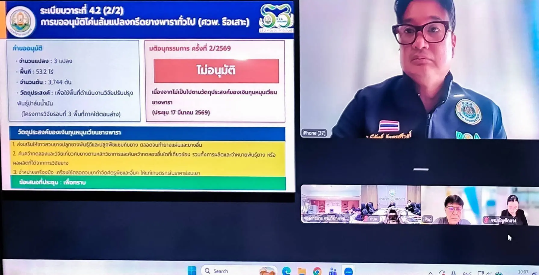 เพื่อทราบผลการดำเนินงานเงินทุนหมุนเวียนยางพาราไตรมาสที่ 2 ประจำปีบัญชี 2569 พร้อมทั้งพิจารณาการขออนุมัติโค่นล้มแปลงกรีดยางพาราทั่วไป เพื่อดำเนินโครงการวิจัยปรับปรุงพันธุ์ปาล์มน้ำมัน เพื่อเพิ่มผลผลิตและปรับตัวในสภาพแวดล้อมที่แปรปรวน ของศูนย์วิจัยและพัฒนาการเกษตรรือเสาะ จังหวัดนราธิวาส