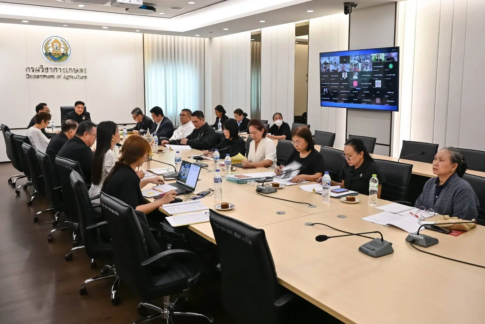 โดยมี นายวิทยากร มณีเนตร อธิบดีกรมการค้าภายใน ดร.สุมิตรา วัฒนา อธิบดีกรมพัฒนาที่ดิน นาย พีรพันธ์ คอทอง เลขาธิการสำนักงานเศรษฐกิจการเกษตร คณะกรรมการ เจ้าหน้าที่ที่เกี่ยวข้อง เข้าร่วมการประชุม ณ ห้องประชุมสำนักงานอธิบดีกรมวิชาการเกษตร และผ่านสื่ออิเล็กทรอนิกส์ Zoom Meeting