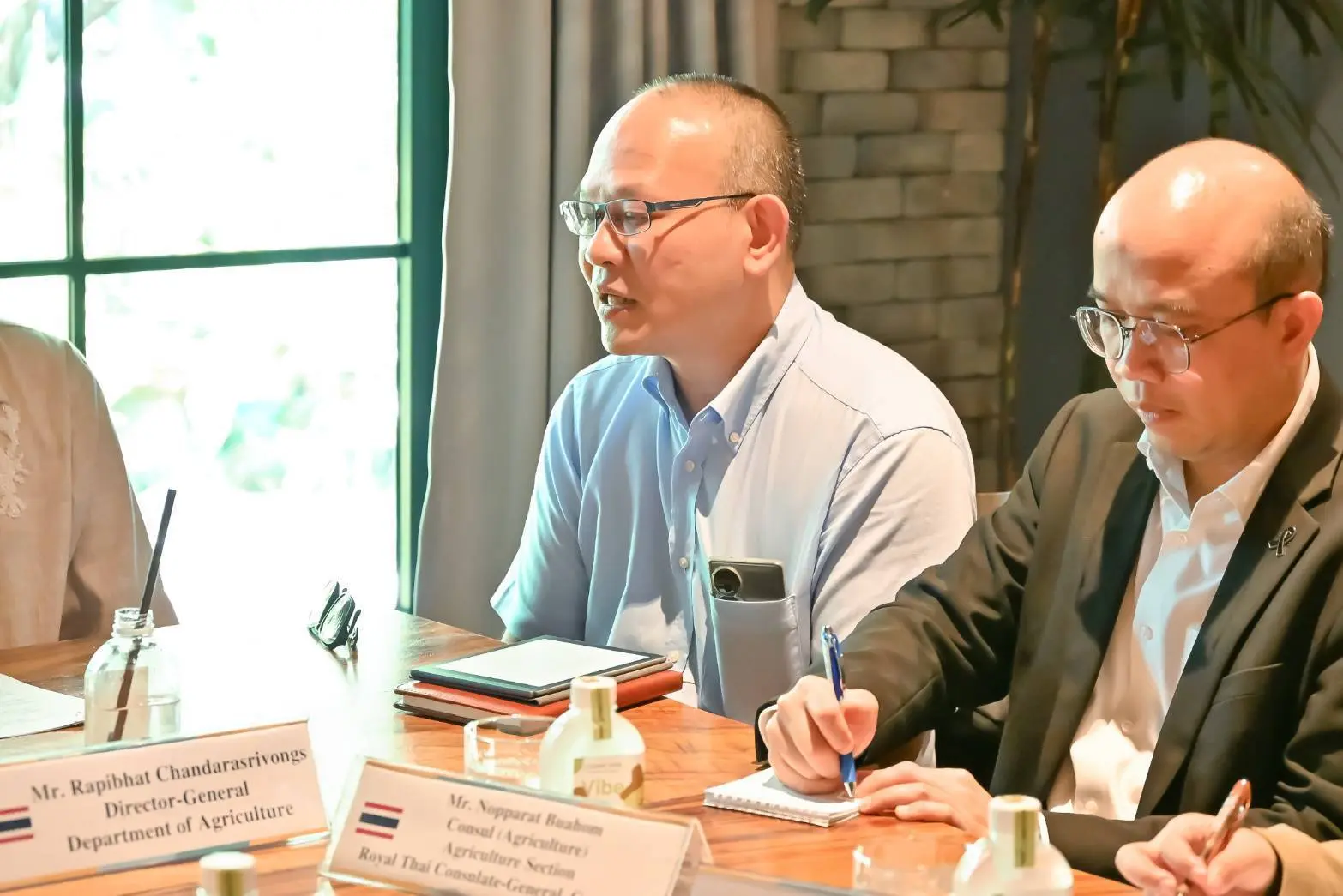 วันที่ 18 เมษายน 2569 นายรพีภัทร์ จันทรศรีวงศ์ อธิบดีกรมวิชาการเกษตร อนุญาตให้นายนพรัตน์ บัวหอม กงสุล (ฝ่ายเกษตร) ประจำสถานกงสุลใหญ่ ณ นครกว่างโจว นำ CEO และคณะผู้บริหารระดับสูงของบริษัท Shenzhen Pagoda Industrial (Group) จำกัด หรือ “พาโกดา” สาธารณรัฐประชาชนจีน ซึ่งเป็นผู้นำเข้าและจัดจำหน่ายผลไม้รายใหญ่จากไทยไปจีน เข้าเยี่ยมคารวะและหารือความร่วมมือในการส่งออกทุเรียนและผลไม้ชนิดอื่นจากไทยไปจีน โดยมีผู้แทนจากกองควบคุมพืชและวัสดุการเกษตร กองพัฒนาระบบและรับรองมาตรฐานสินค้าพืช และกองยุทธศาสตร์และแผนงาน เข้าร่วมการหารือ