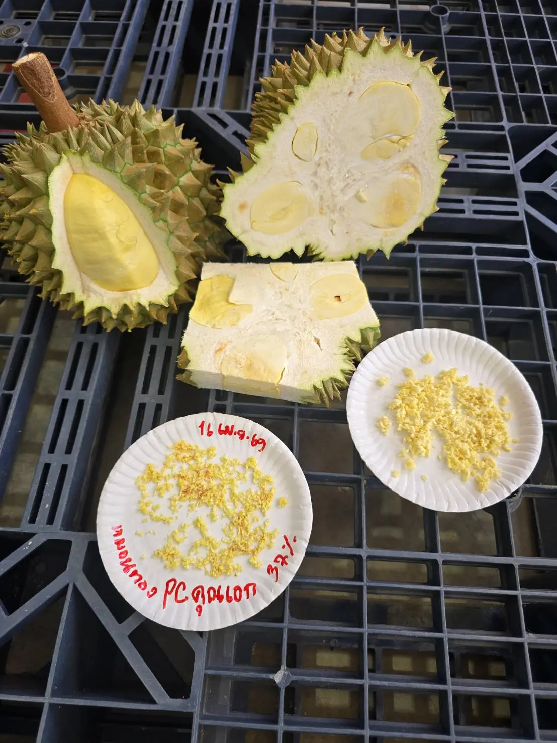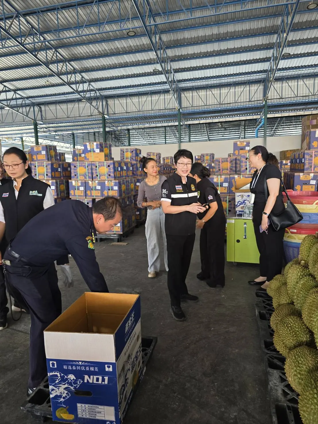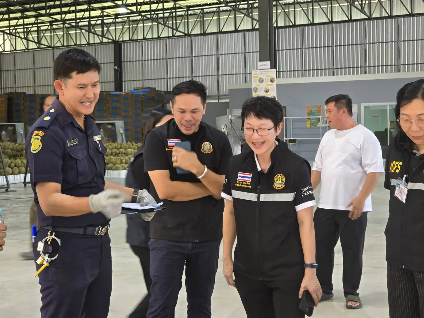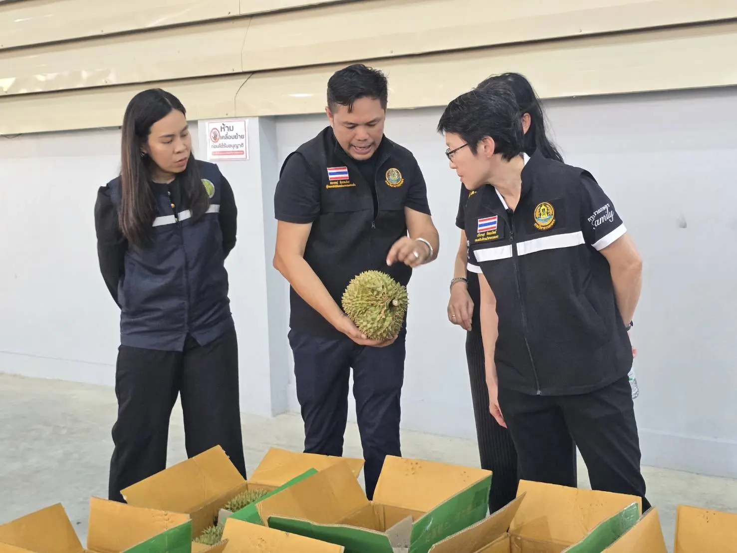 เมื่อวันที่ 16-17 เมษายน 2569 นางสาวปรียานุช ทิพยะวัฒน์ รองอธิบดีกรมวิชาการเกษตร นำคณะเจ้าหน้าที่สำนักงานวิจัยและพัฒนาการเกษตร เขตที่ 6 จันทบุรี กองพัฒนาระบบและรับรองมาตรฐานสินค้าพืช กองควบคุมพืชและวัสดุการเกษตร กรมส่งเสริมการเกษตร และเจ้าหน้าที่สำนักงานมาตรฐานสินค้าเกษตรและอาหารแห่งชาติ ลงพื้นที่เพื่อกำกับดูแล ติดตามงาน พร้อมให้คำปรึกษาการดำเนินงานตามมาตรการเร่งด่วนในการป้องกันและแก้ไขปัญหาการตัดทุเรียนด้อยคุณภาพในพื้นที่ภาคตะวันออก โดยเน้นสร้างความเข้าใจกับผู้รวบรวม และผู้ส่งออก ร่วมกันปฏิบัติตามมาตรฐานบังคับอย่างเคร่งครัด โดยเฉพาะการตัดทุเรียนแก่ตามเกณฑ์ที่กำหนด เพื่อรักษาความเชื่อมั่นของผู้บริโภคทั้งในและต่างประเทศ โดยเน้นย้ำมาตรการ “4 ไม่” ได้แก่ ไม่อ่อน ไม่หนอน ไม่สวมสิทธิ์ และไม่มีสารตกค้าง เพื่อป้องกันทุเรียนด้อยคุณภาพออกสู่ตลาด ตามนโยบายของนายสุริยะ จึงรุ่งเรืองกิจ รัฐมนตรีว่าการกระทรวงเกษตรและสหกรณ์ และนายรพีภัทร์ จันทรศรีวงศ์ อธิบดีกรมวิชาการเกษตร ที่มุ่งยกระดับคุณภาพสินค้าเกษตรไทยและสร้างความเชื่อมั่นในตลาดโลก เพื่อปกป้องภาพลักษณ์ “ทุเรียนไทยคุณภาพ” อย่างยั่งยืน